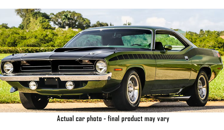 The 1970 AAR 'Cuda was a very rare machine. It was made only for the 1970 model year, with a total production of 2,724. The car's namesake was the AAR (All American Racers) Plymouth Barracudas that were campaigned by famed racer Dan Gurney's team in the SCCA-sanctioned Trans-Am series. This Plymouth AAR Cuda sports a gorgeous Ivy Green paint with the strobe stripes down the side and a beautiful green interior! Under the hood a fully detailed 340 engine with dual exhaust sending power to the Rallye wheels and tires and so much more!!