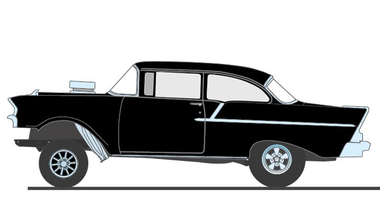 This 1957 Chevrolet 150 Gasser Prime Time is finished in a stunning satin Black paint finish with chrome gasser drag wheels and tires. The lift off hood reveals a blown 427 engine with a fully detailed chassis. Fully featured interior with opening doors and trunk and so much more!