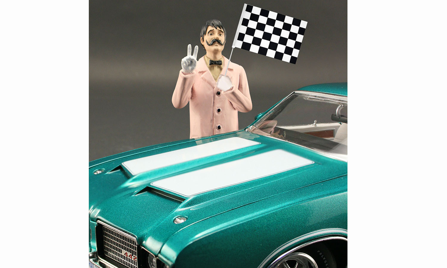 Dr. Olds prescribes pure muscle! Step into the Doctor’s laboratory, where horsepower is the cure and the W-30 is the prescription Grab the all new 1:18 Dr. Olds figure with checkered flag!