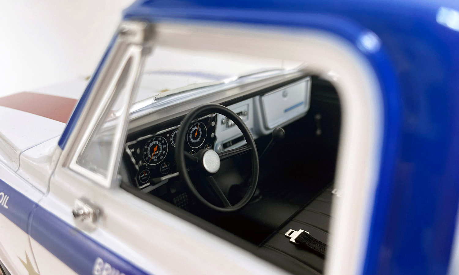 ACME is pleased to announce a new, limited edition series that celebrates the 250th anniversary of the USA The first two releases in the 250 series is celebrates the iconic USA-1 Drag Team. This 1961 Chevrolet Corvette Gasser and 1967 Chevrolet C-30 Ramp Truck are finished in the famous USA-1 high gloss white paint along with the red and blue stripes. The USA-1 logo adorns both doors and is complemented by golden stars down both sides of the Corvette and Ramp Truck bodies.