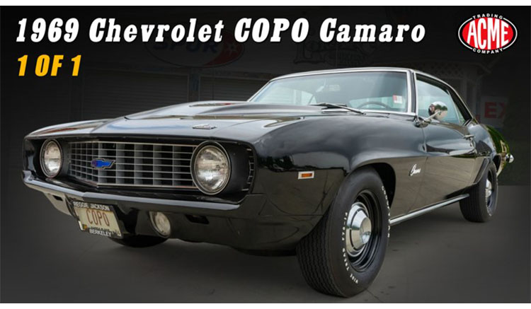 Finished in a deep Tuxedo Black paint, this 1969 Chevrolet COPO Camaro is the only COPO Camaro that was ordered with the rare code 714 yellow houndstooth interior! The model features a fully plumbed and wired COPO 427 engine, opening doors, hood, and trunk, a fully detailed interior with folding front seats, a fully detailed chassis and period correct Wide Tread tires mounted on black steel wheels with polished hubcaps and so much more! The Chevrolet 1969 COPO Camaros were intentionally designed to appear as a base model economy car. No Z/28 stripes, no SS badging, no RS hidden headlights, just plain jane hubcaps on a plain looking body. But, under an unassuming hood, lurked a monster 427 V8 engine that pumped out 425 horsepower!