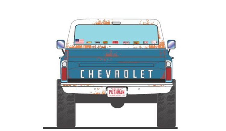 The World of Outlaws 1967 Chevrolet K-10 Push Truck is a must have for your sprint car collection! The model has all the features you'd expect in a dirt track push truck! It starts with the custom weathered/ dirty exterior and large off-road 35" wheels and tires powered by a Small Block 350 engine. We then move to the roll bar with KC lights, CB antenna, lifted suspension, and the wood push block on the front bumper. Now you're ready to get your diecast sprint car rolling for the A Main!!!