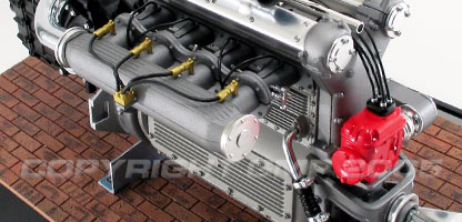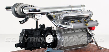 In ‘65 the Offys dominance was coming to an end thanks to the Ford four-cam V-8 engines. Following a horrific crash at the ’64 Indianapolis race, requirements changed regarding the type of fuel to be used and how much could be carried by cars. Gas was outlawed and the new fuel of choice was Methonal. Considering these changes, Offy builders labored to find a way to push the Offy for more power. Finally after many prototypes the turbo Offy engine was born. This engine had enormous horsepower for a small displacement engine and all but dominated any race it ran in. Now you can remember the days when racing was about the men and their machines with this 1:6 scale Turbo Offy engine. This replica features a meticulously detailed engine with transmission and turbo. If you know racing then this is a must have for any serious collector. Order your limited edition replica today!