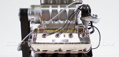 Functional throttle linkage - Removable magnetic valve covers - Fully detailed removable heads - Detailed block with pistons - Rotating belt drive